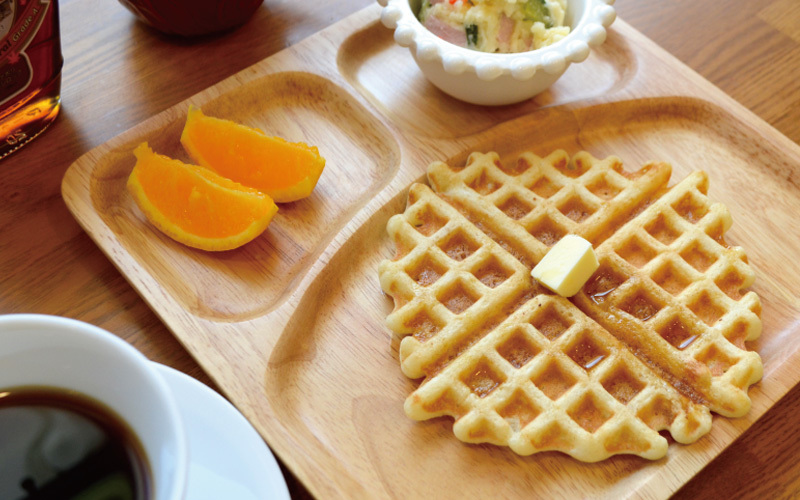 モーニングの時間帯にドリンクをご注文いただくと、ワッフル1枚・ゼリー・サラダがついてきます。※スペシャルコーヒーにはモーニングがつきません